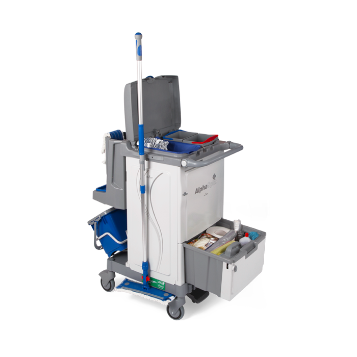 - Alpha trolleys can be employed both with the traditional wet mopping system with buckets and wringers and with the more recent wet mopping system such as pre-soaking and mop pre-soaking on demand.