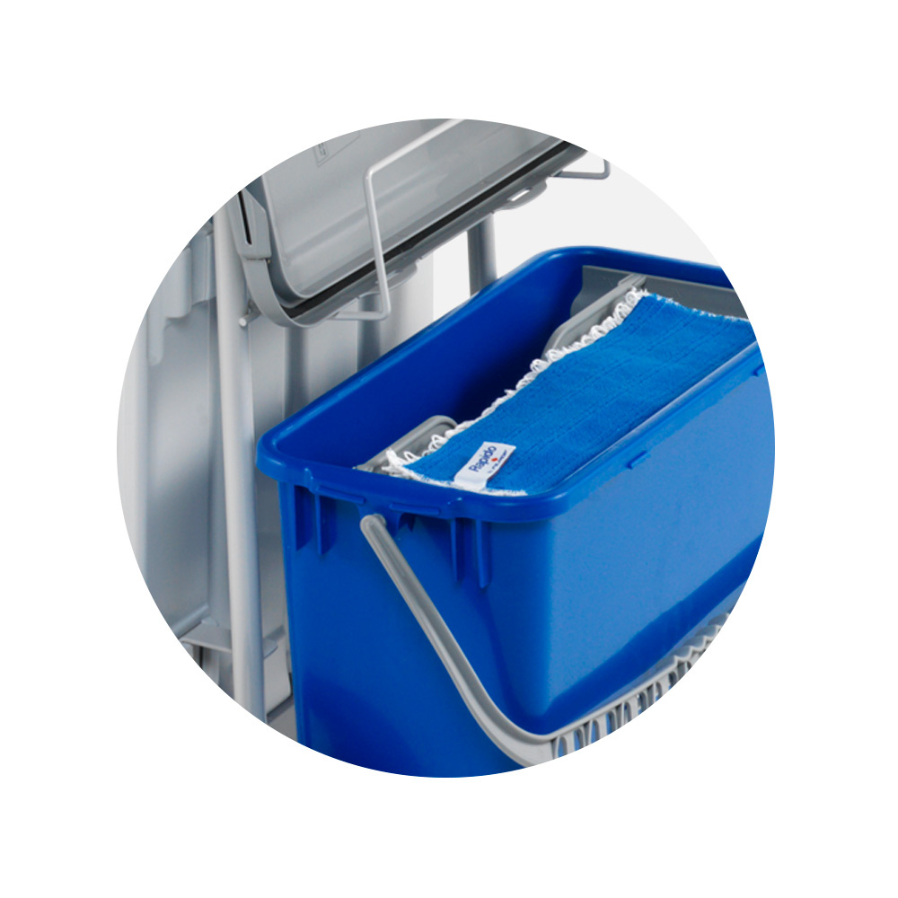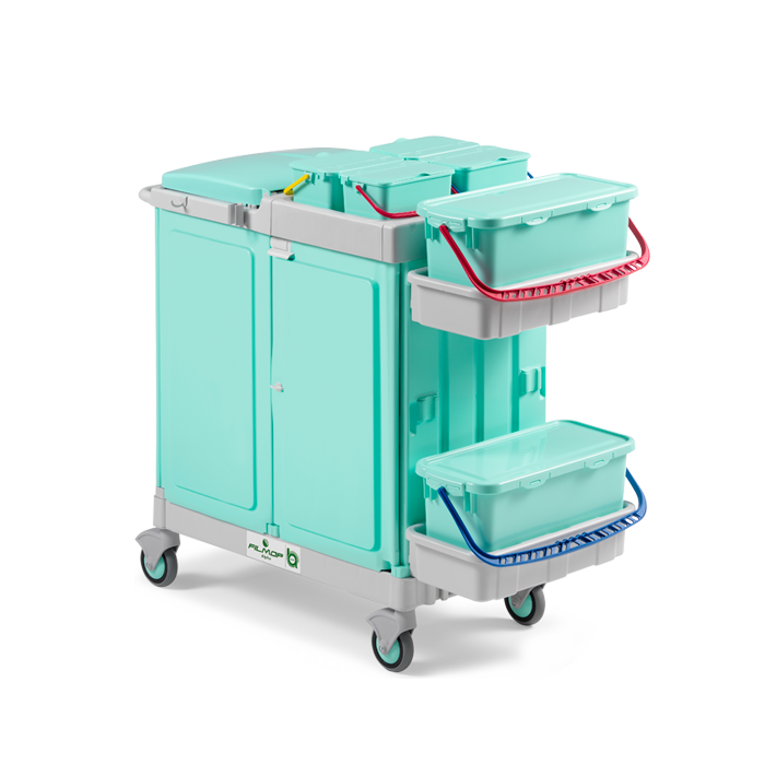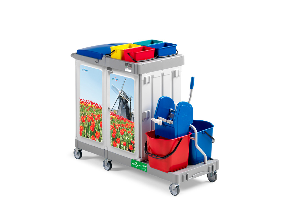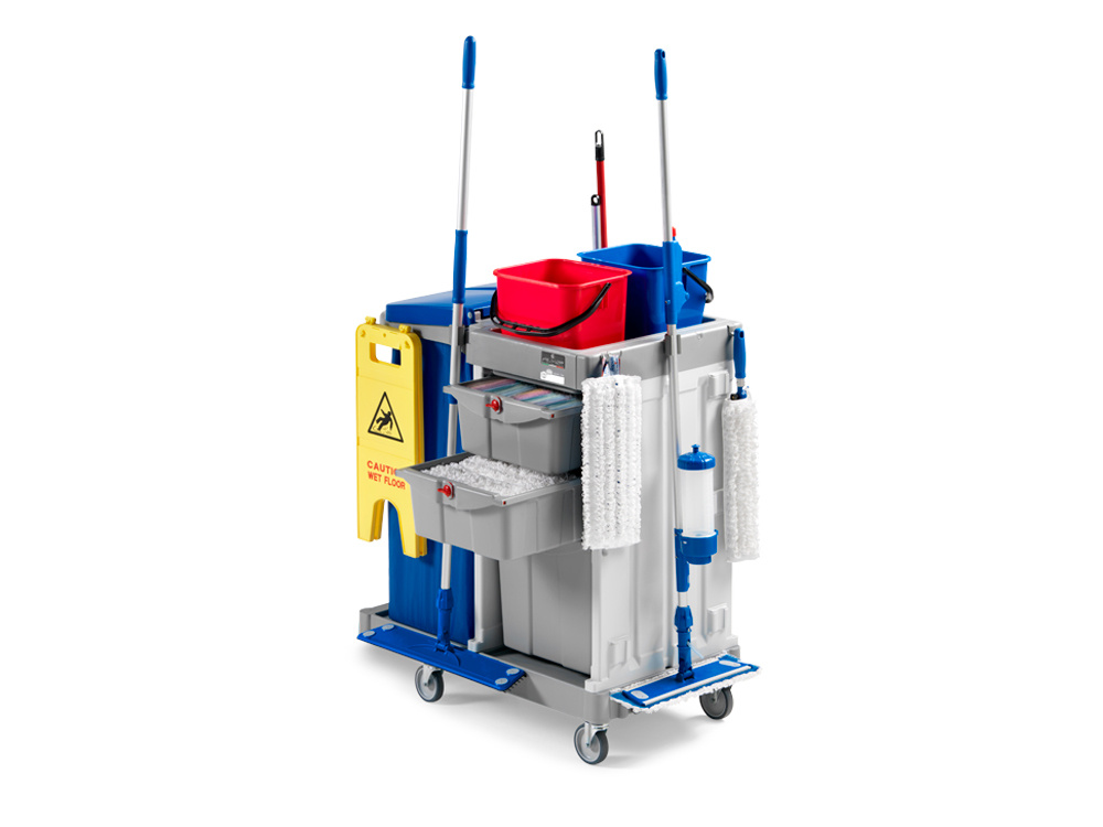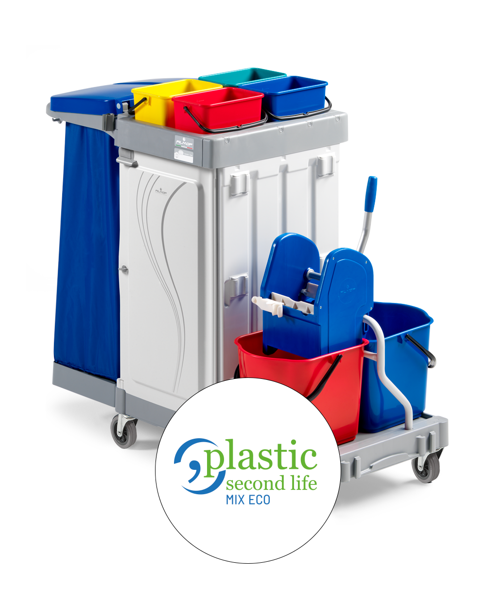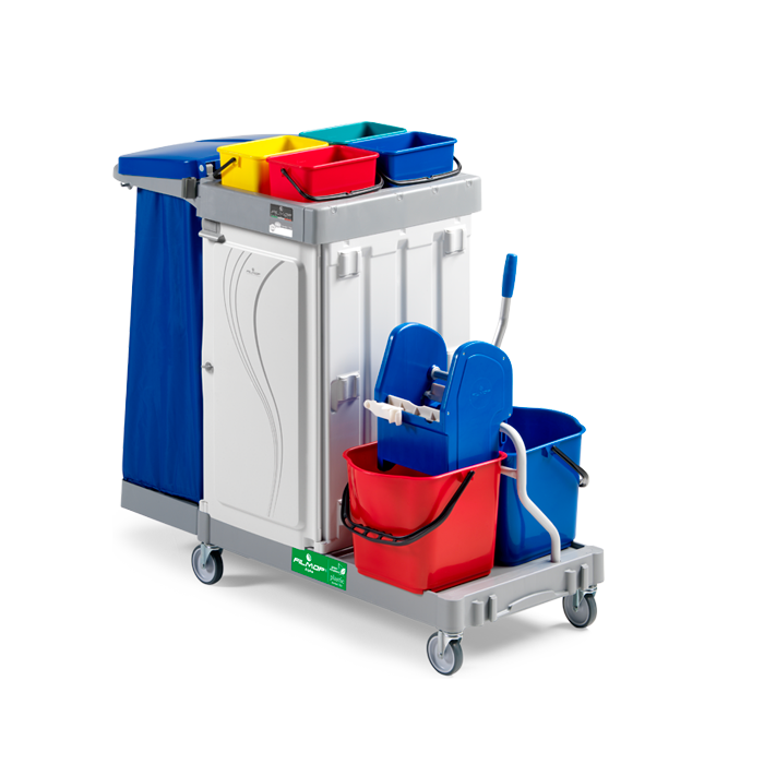 Specific versions for all the main cleaning operations: waste collection, storage and wet mopping