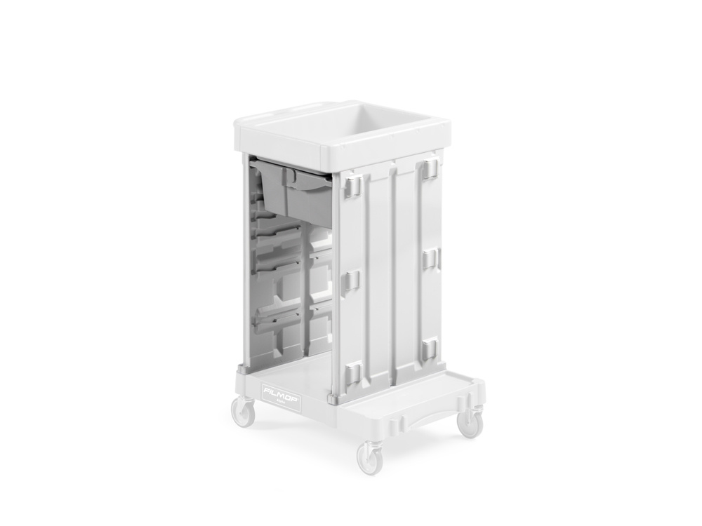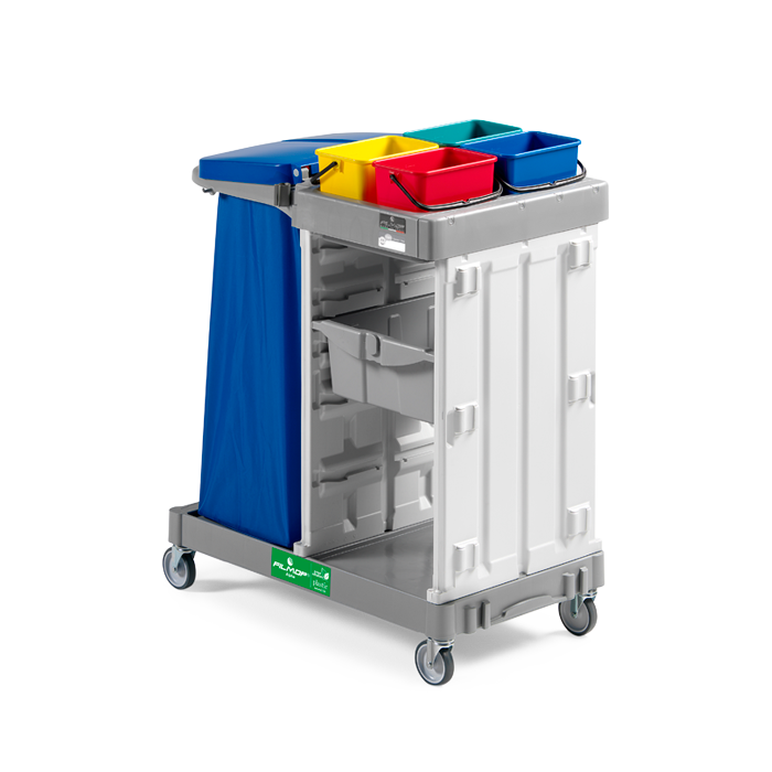 Alpha is a range of “taylor-made” multipurpose trolleys, developped to satisfy any cleaning need thanks to the modularity of its components.