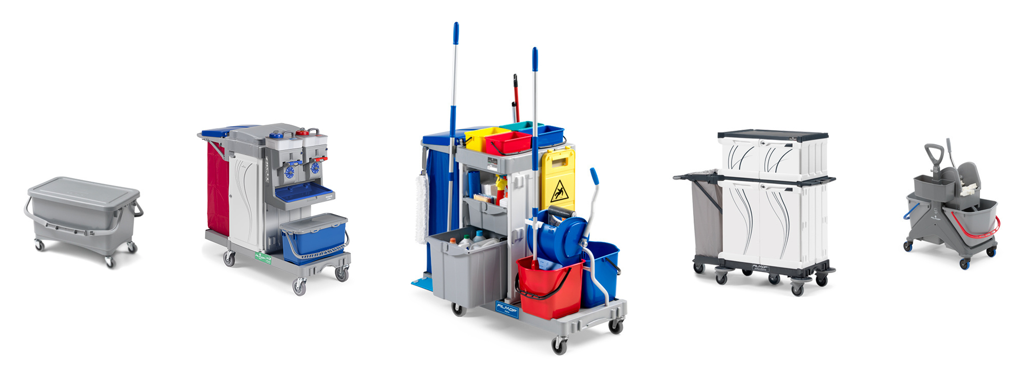 Filmop offers a wide range of trolleys, bins and buckets with components made using recycled plastics.