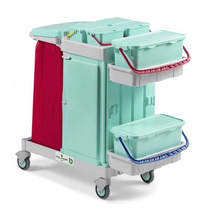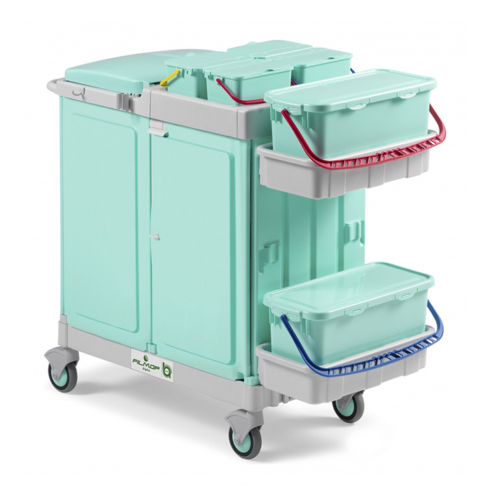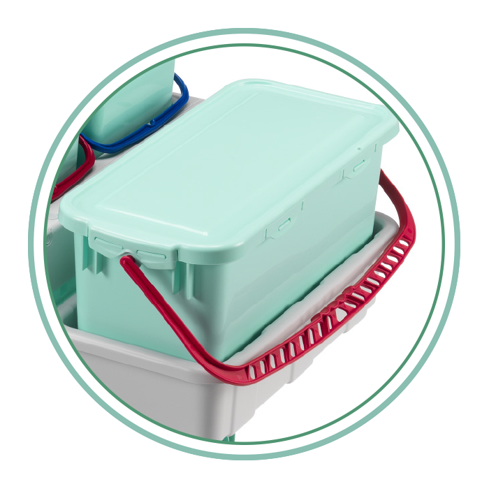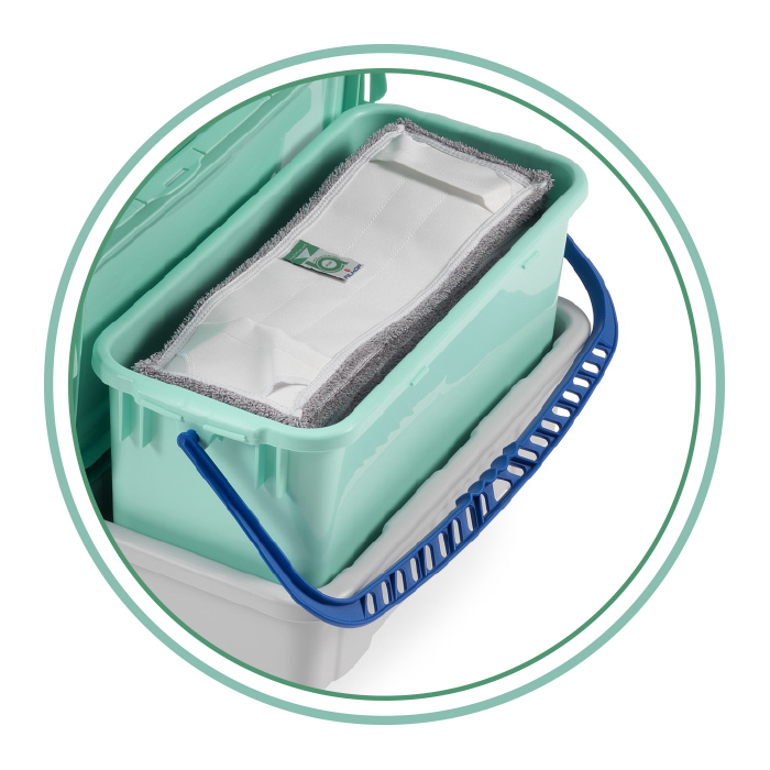 The antibacterial properties of our materials together with the advantages offered by our multipurpose Alpha trolleys equipped with pre-soaking system and Uniko mop holder guarantee the highest HYGIENE - SAFETY - EFFICACY performances