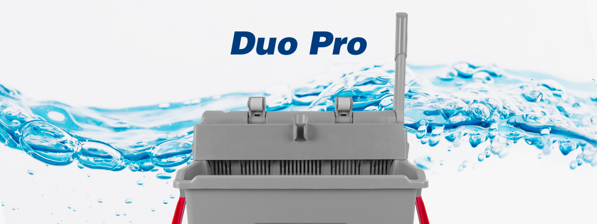 Duo Pro System is a professional wringing system consisting of a practical wringer and bucket. It’s available with or without wheels, depending on specific needs.