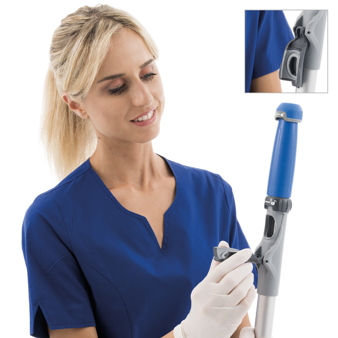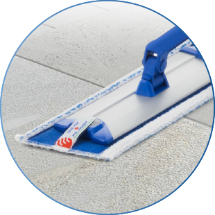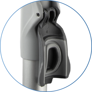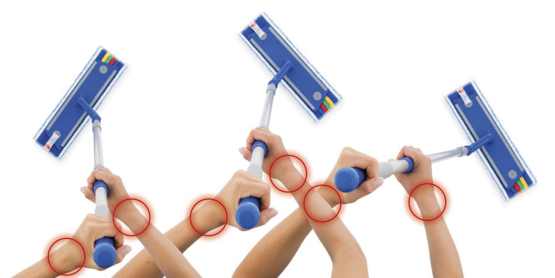 The 360° rotation of the grips and the ergonomic design of the mop holder joint guarantee the health and well-being of the operator, preventing the onset of musculoskeletal disorders and pathologies over time.