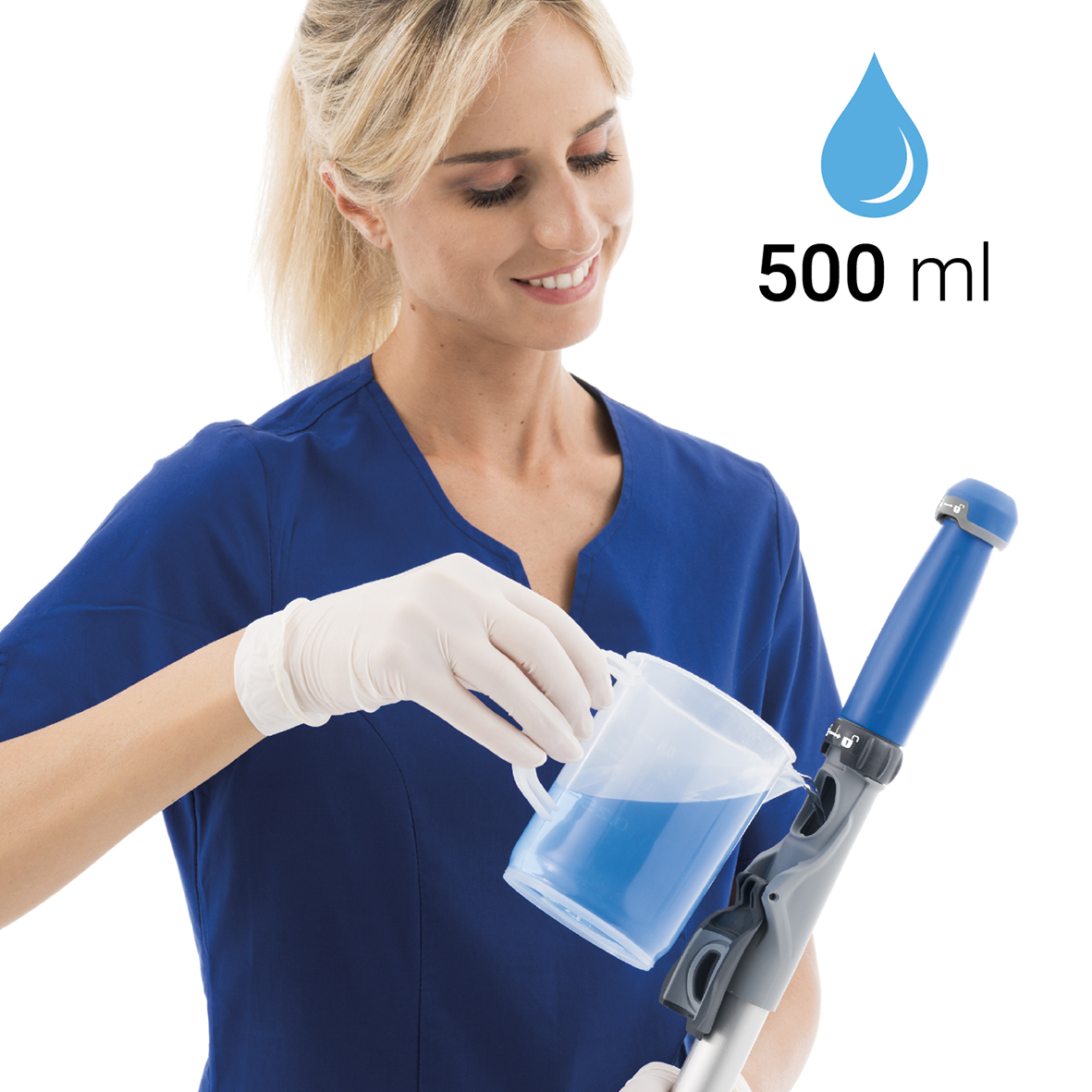 The tank has a capacity of 500 ml, the special jug makes it easier to fill it |