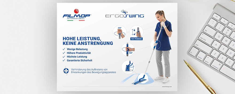 The advertising dedicated to ErgoSwing system passed with flying colours the Advertising Copy Test 2019, the quality analysis promoted by the trade magazine Reinigungs Markt that awards the best advertisements every year.