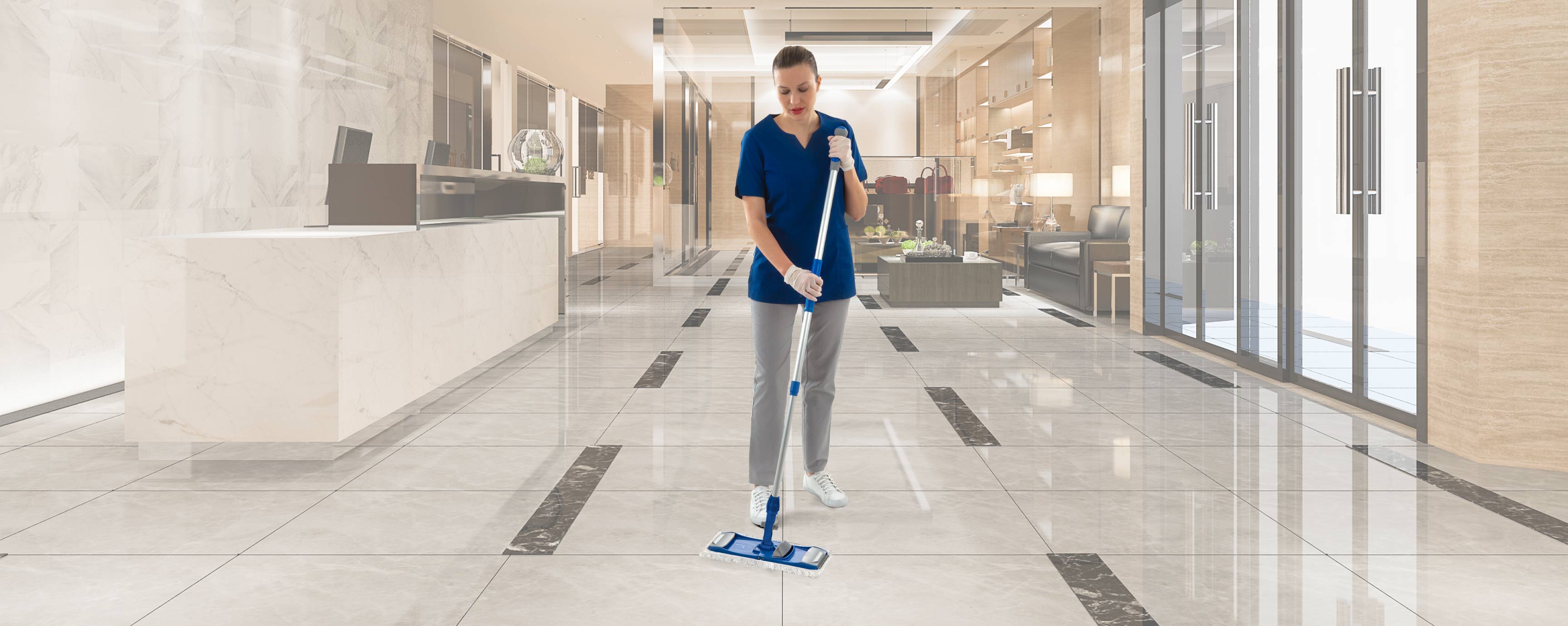 Hygiene is a main issue for us and hard floors make it easier to achieve this goal. In order to clean them, we recommend our microfibres, which are characterised by very fine filaments that can penetrate the tiniest surface porosity and remove dirt with ease. The high collection capacity allows them to effectively remove viruses and bacteria while ensuring high hygienic standards. The wide range offers many solutions to meet any need by properly treating all types of indoor and outdoor flooring.