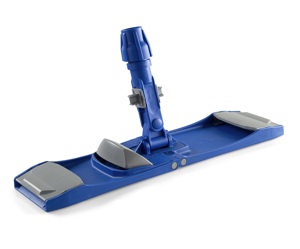Our top-of-the-range systems guarantee excellent results in terms of cleanliness and hygiene, respecting the health of the operator: they are characterized by a design with great attention to details that guarantee maximum convenience, speed and ergonomics. They stand out also for some special features that offer important advantages: the automatic fixing system of the mop saves the operator from bending continuously to fix and drop it, requiring less effort in comparison with traditional cleaning systems. The touch-free system allows fixing and releasing the mop avoiding direct contact with the hands, thus reducing the cross-contamination risk. In addition to these advantages, Filmop offers another big one: our mop holders can be equipped with Lock System to easily clean also walls and ceilings, ensuring maximum adherence to surfaces for better cleaning results. This system can be switched on and off by simply pushing up or down the locking device with one's foot, without the use of one's hands and without bending anymore. Besides the Lock System joint, the mop holders are also available with ErgoSwing joint to increase their performances, while decreasing the efforts: this innovative system allows reducing significantly the wrists' bending, facilitates the "S" movement and assures the correct posture, preventing the onset of work-related illnesses.