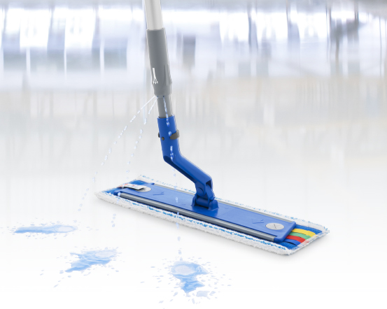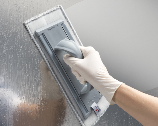 The Top-Clean system consisting of a mop holder with hand-grip and microfiber mop is ideal for cleaning desks, desktops, and blackboards while the Brilliant system effortlessly removes dust, dirt, stains, and fingerprints from glass and mirrors, leaving surfaces without smears. Compared to traditional manual wiping, both systems allow a significantly larger surface area to be cleaned in a single wipe, making cleaning faster and more effective.