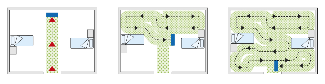 Floor cleaning is a task that is as important as it is delicate and must be carried out with appropriate equipment, following a well-defined procedure. First of all, to achieve optimal distribution of the detergent or disinfectant, it is recommended to start at the door and sweep the mop to the opposite side, in this way a strip of solution is released in the middle of the room, soaking it with each swipe.