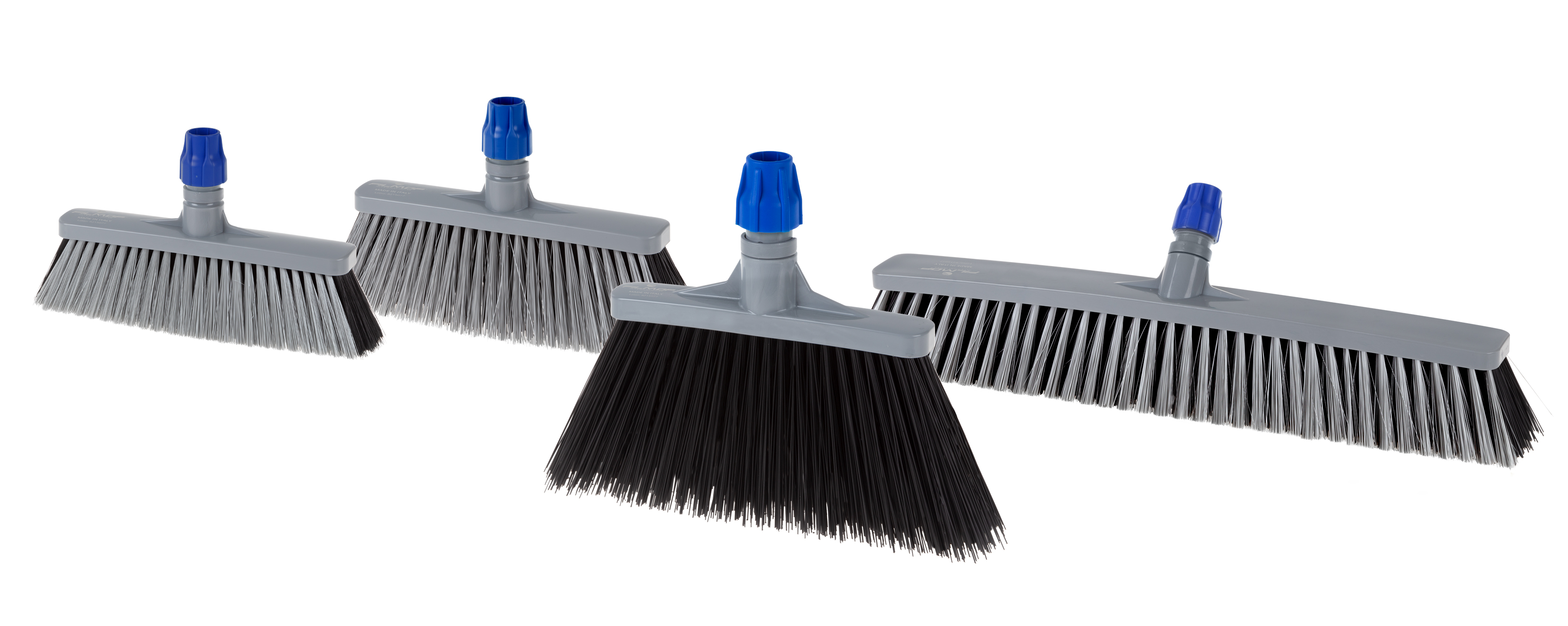 The special range consists of four types specifically designed to offer solutions for different needs. The broom with soft bristles collects fine dirt and is suitable for indoor use on even floors, while the broom with hard bristles easily removes coarse dirt offering greater abrasion resistance and is ideal for cleaning uneven outdoor floors. The range also includes the high broom with hard bristles, ideal for removing dirt from carpets and carpeting. It also features a narrow holder that allows it to sweep hard to reach gaps and narrow spaces, thus ensuring thorough cleaning. Finally, the push broom combines the strengths of both bristle types: the soft external bristles allow optimal collection of finer dirt while the hard internal bristles remove coarse dirt. Suitable for cleaning large indoor spaces with even, obstacle-free floors, it is available in three sizes to suit different needs.