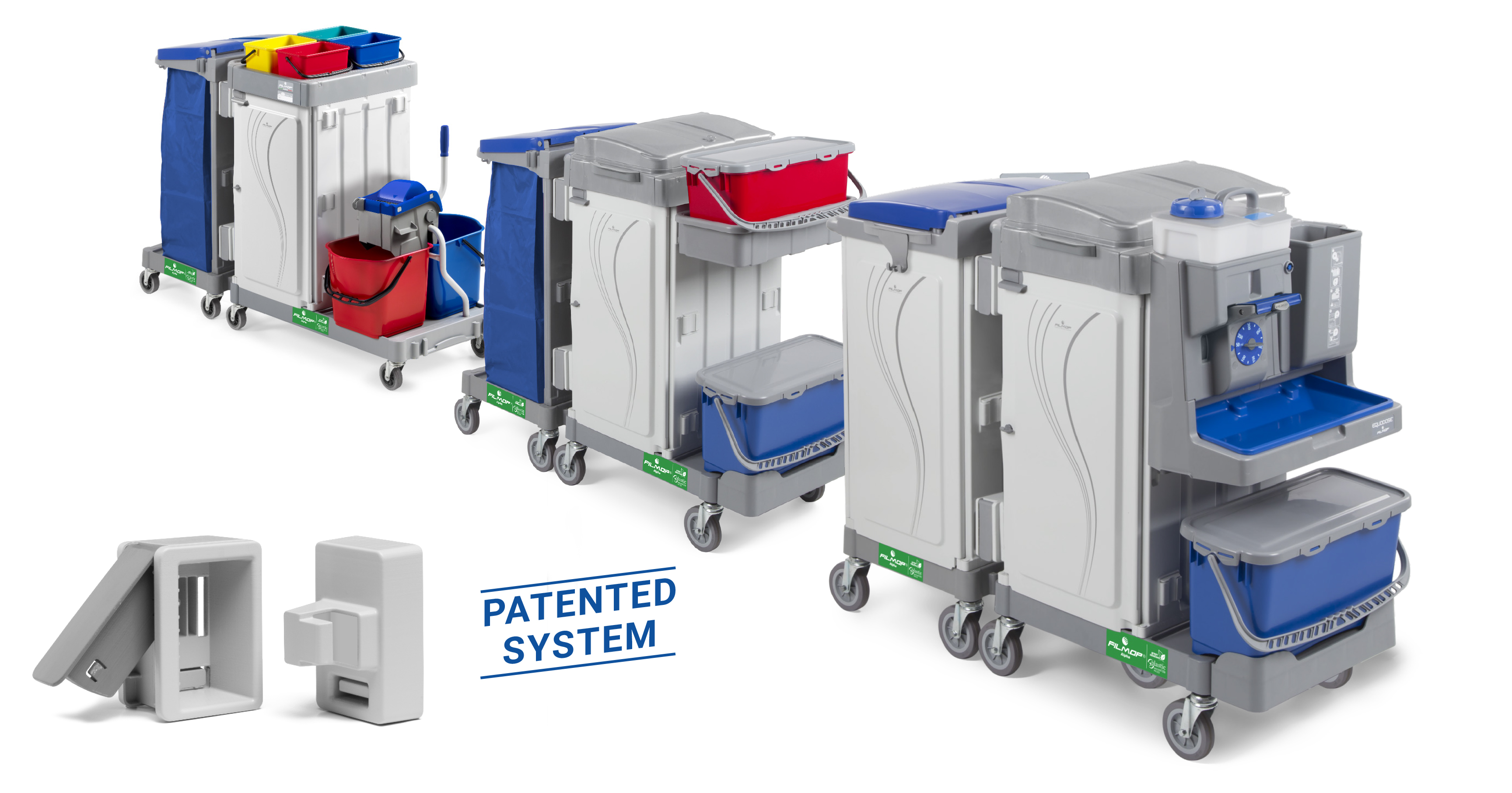 The Link-Up system is the ideal solution in all environments where cleaning requires a trolley complete with collection, storage and washing area, while at the same time allowing the units to be independent so as to maximise freedom of movement.