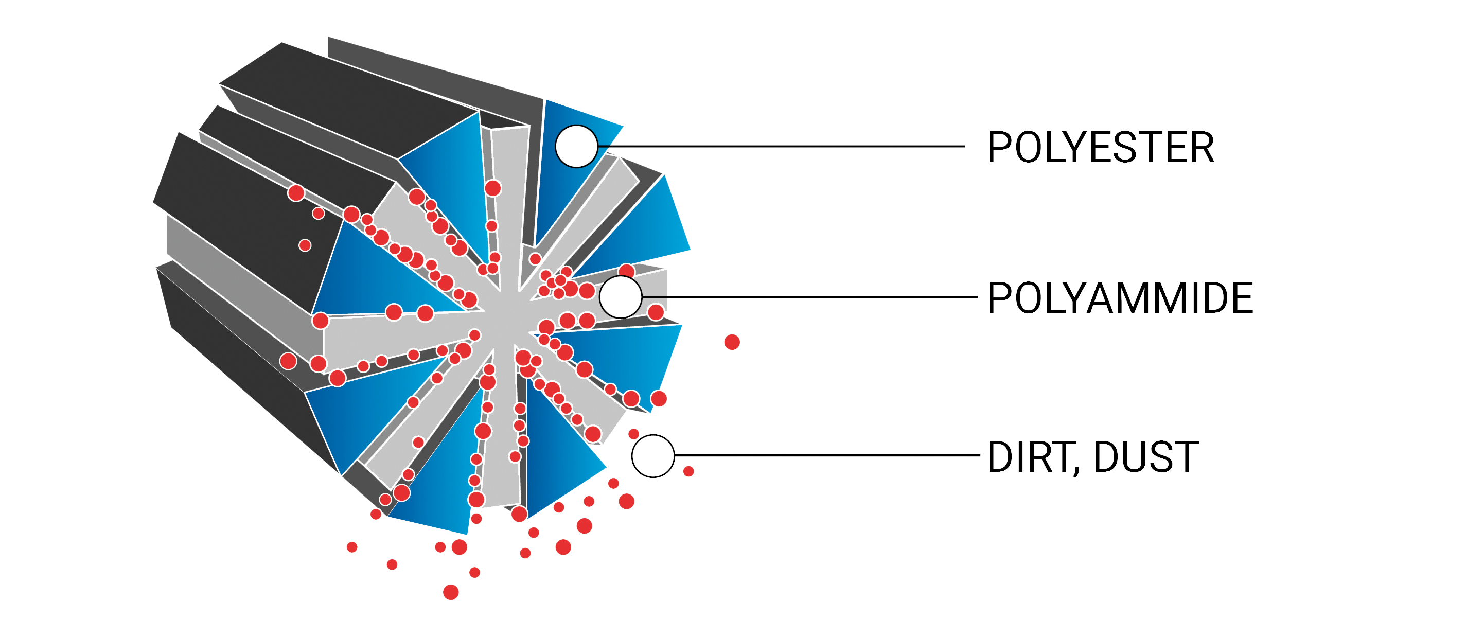 ACTIVE-FURMicrofiber with nylon inserts for a lower mop friction and a better dirt collection. Removes 99.7% of viruses