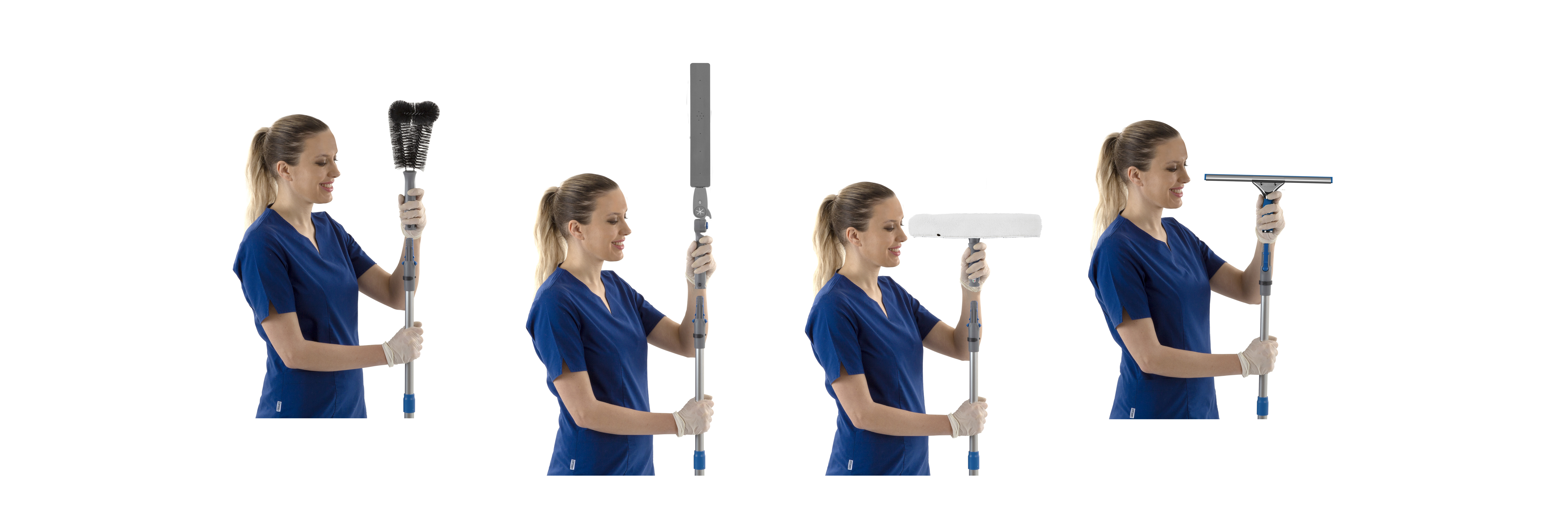 With Uni-connect you can easily clean glass, surfaces and floors using a single system: