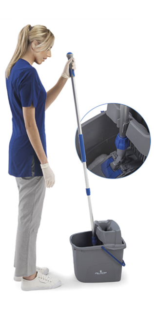 Inserire il panno nello strizzino e procedere con la strizzatura |
