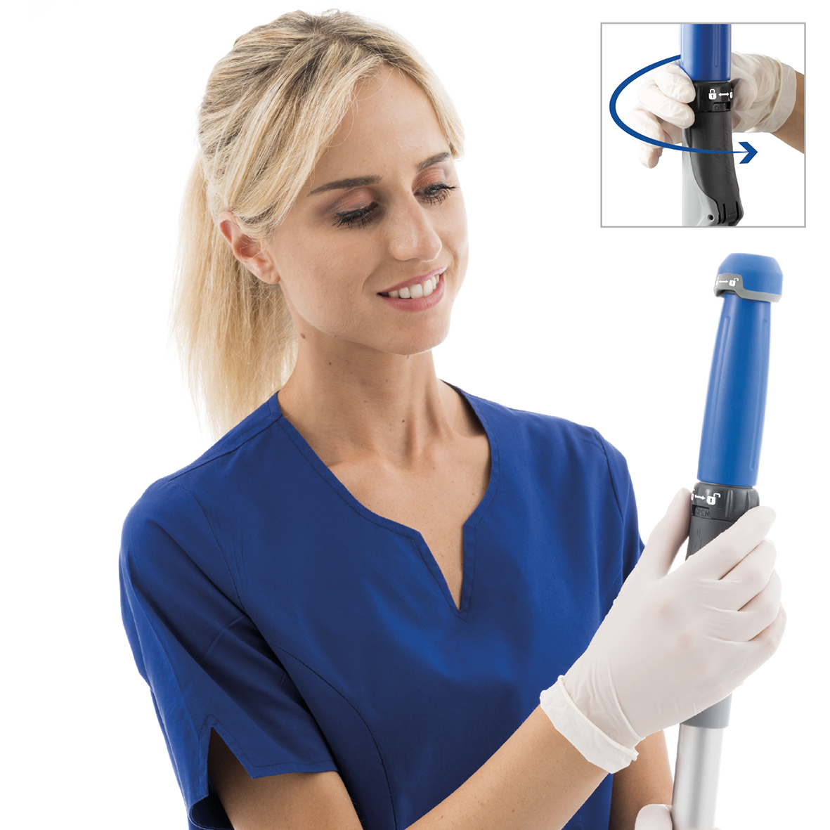 La rotazione a 360° delle impugnature e il design ergonomico del bocchettone del telaio garantiscono la tutela della salute e del benessere dell’operatore, prevenendo l’insorgenza di disturbi e patologie muscoloscheletriche.