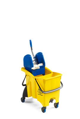 Lo speciale secchio strizzatore è dotato di sistema di separazione dell’acqua pulita da quella di risciacquo con doppio rubinetto di scarico per agevolare l’operazione di svuotamento ed è fornito inoltre di una doppia maniglia per assicurare la massima stabilità del secchio anche in fase di trasporto.