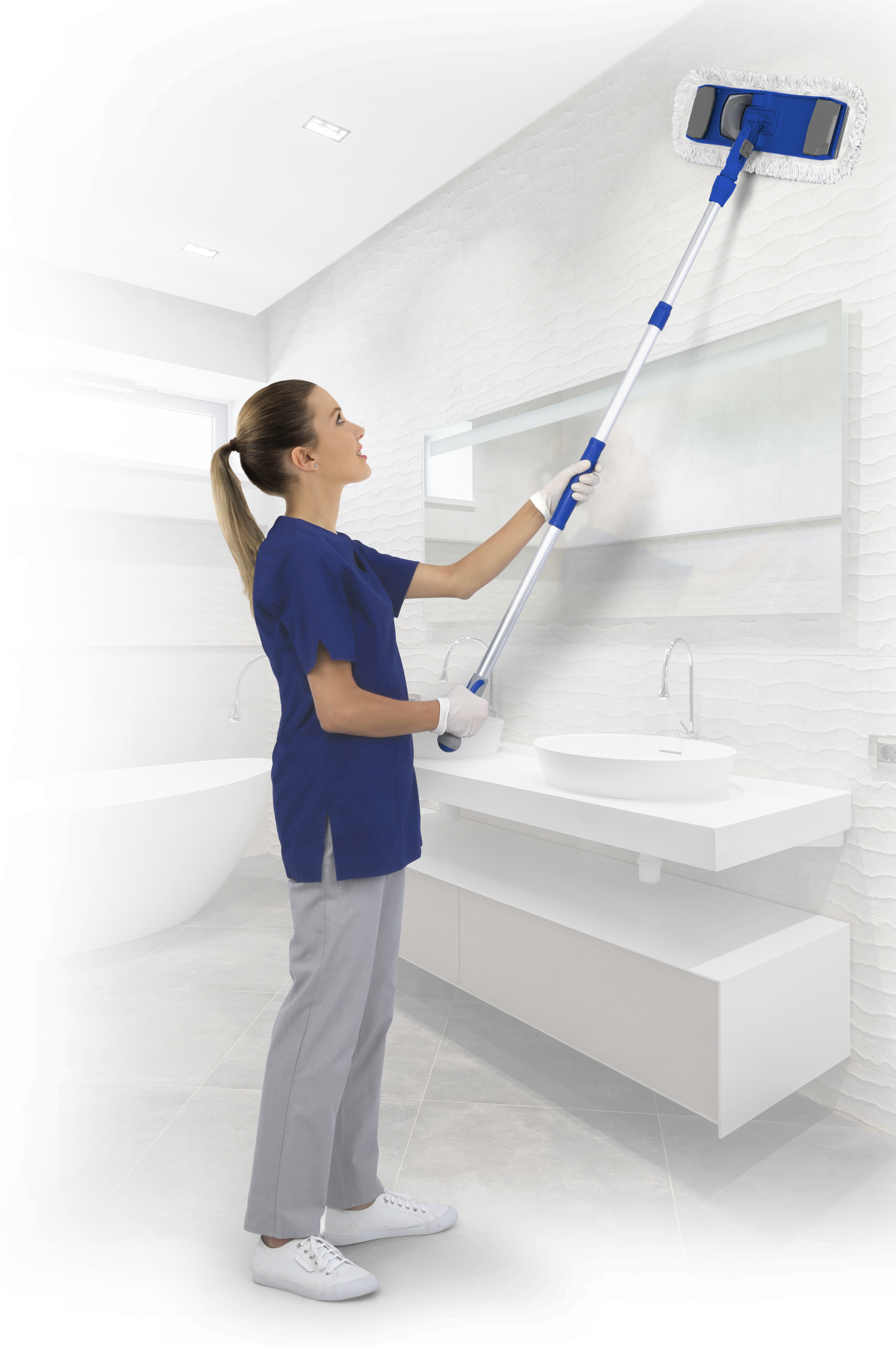 Composto da telaio pieghevole e panno con micro alette, facilita le operazioni di pulizia, tutela la salute dell’operatore e garantisce elevati standard igienici.