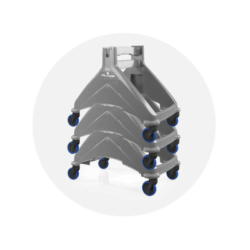 Le versioni con attacco Uni-Connect consentono di avere sempre a portata di mano l’attrezzatura necessaria, rendendo minimo l’ingombro del carrello. Grazie al sistema Uni-Connect l’operatore può sganciare il telaio nell’attacco e agganciare il manico agli attrezzi per la pulizia di vetri e superfici elevate, rendendo più efficiente l’intero processo.