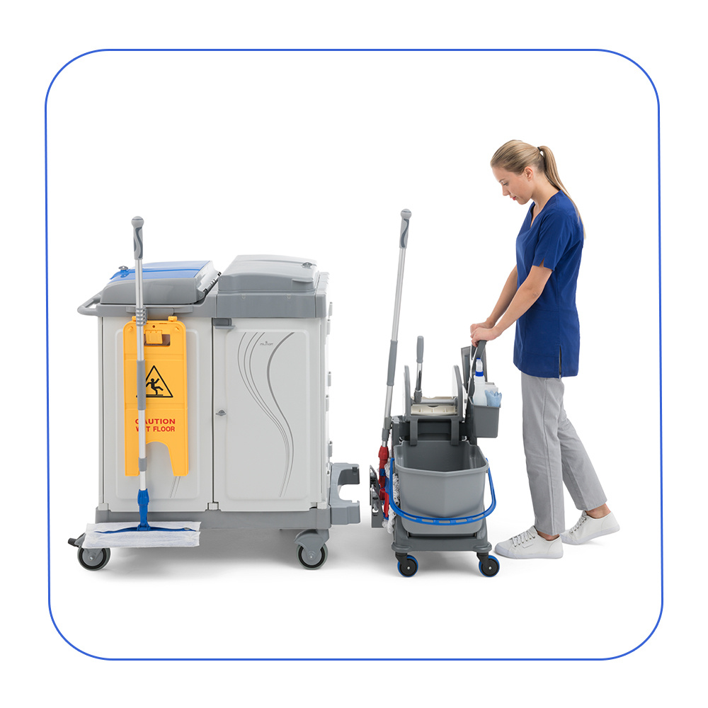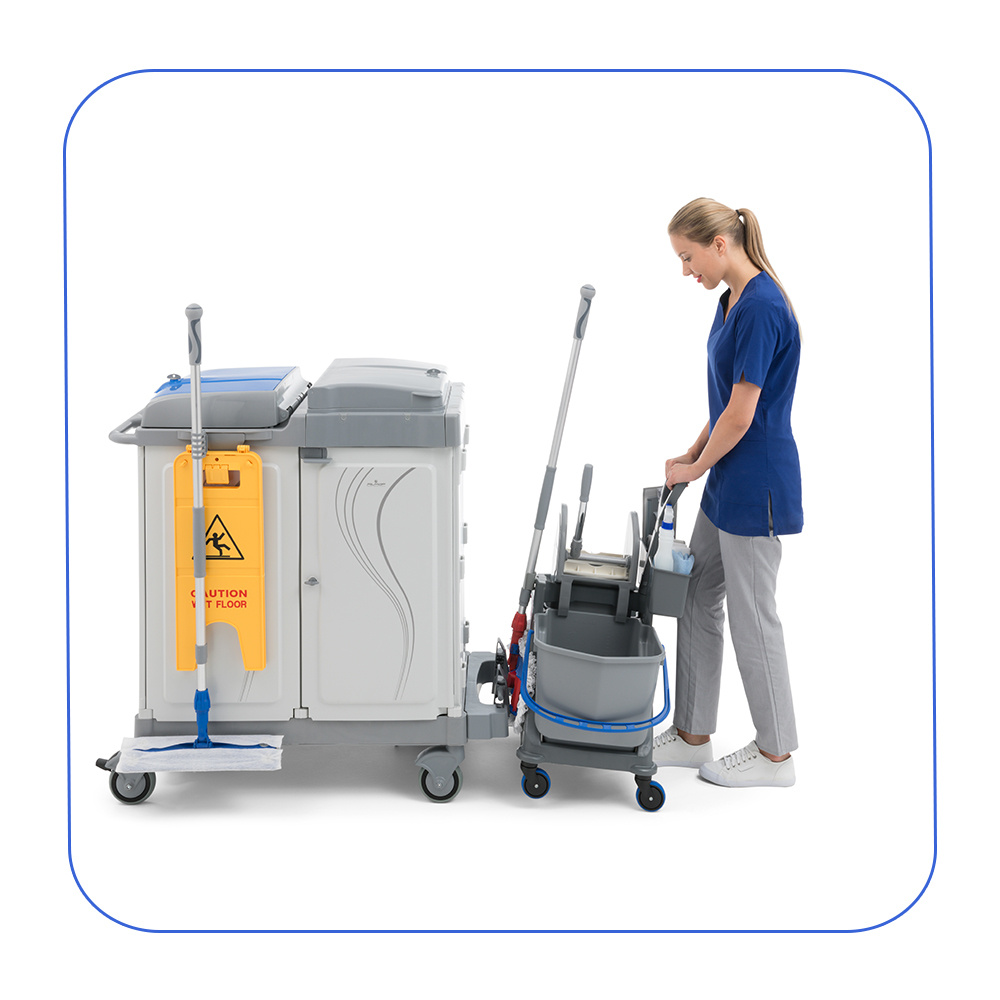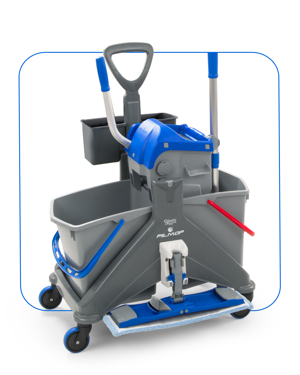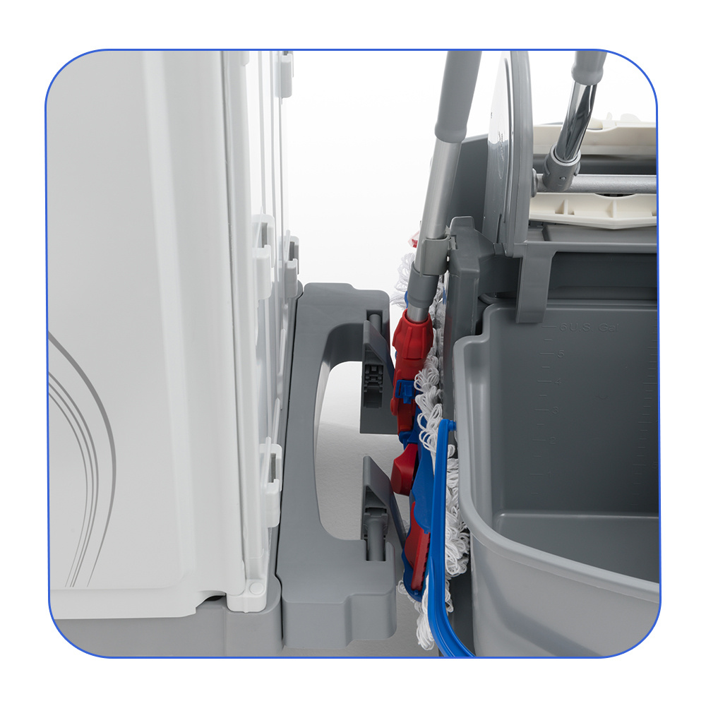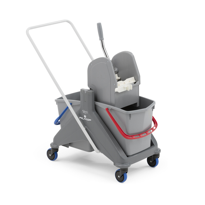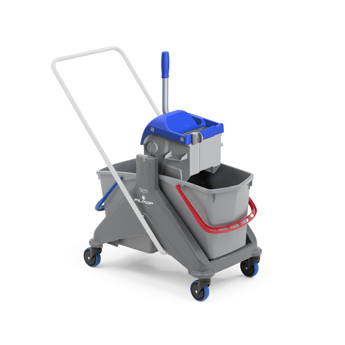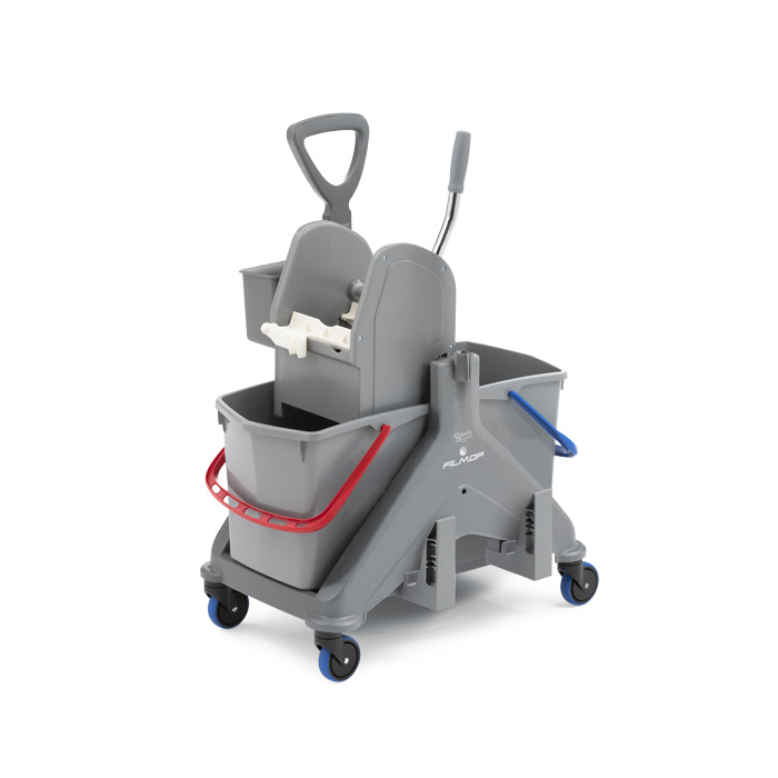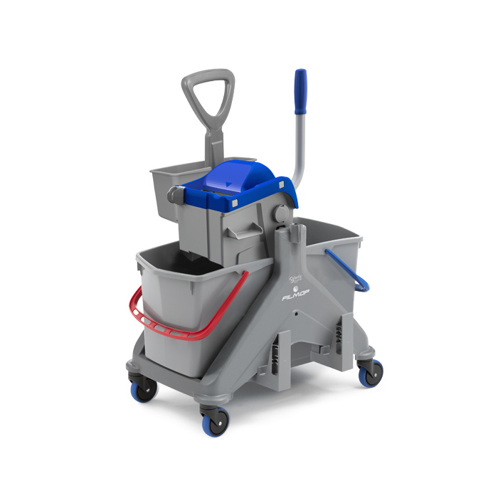 I due secchi con codice colore permettono di separare la soluzione detergente dall’acqua di risciacquo, assicurando una pulizia efficace e la massima igiene.